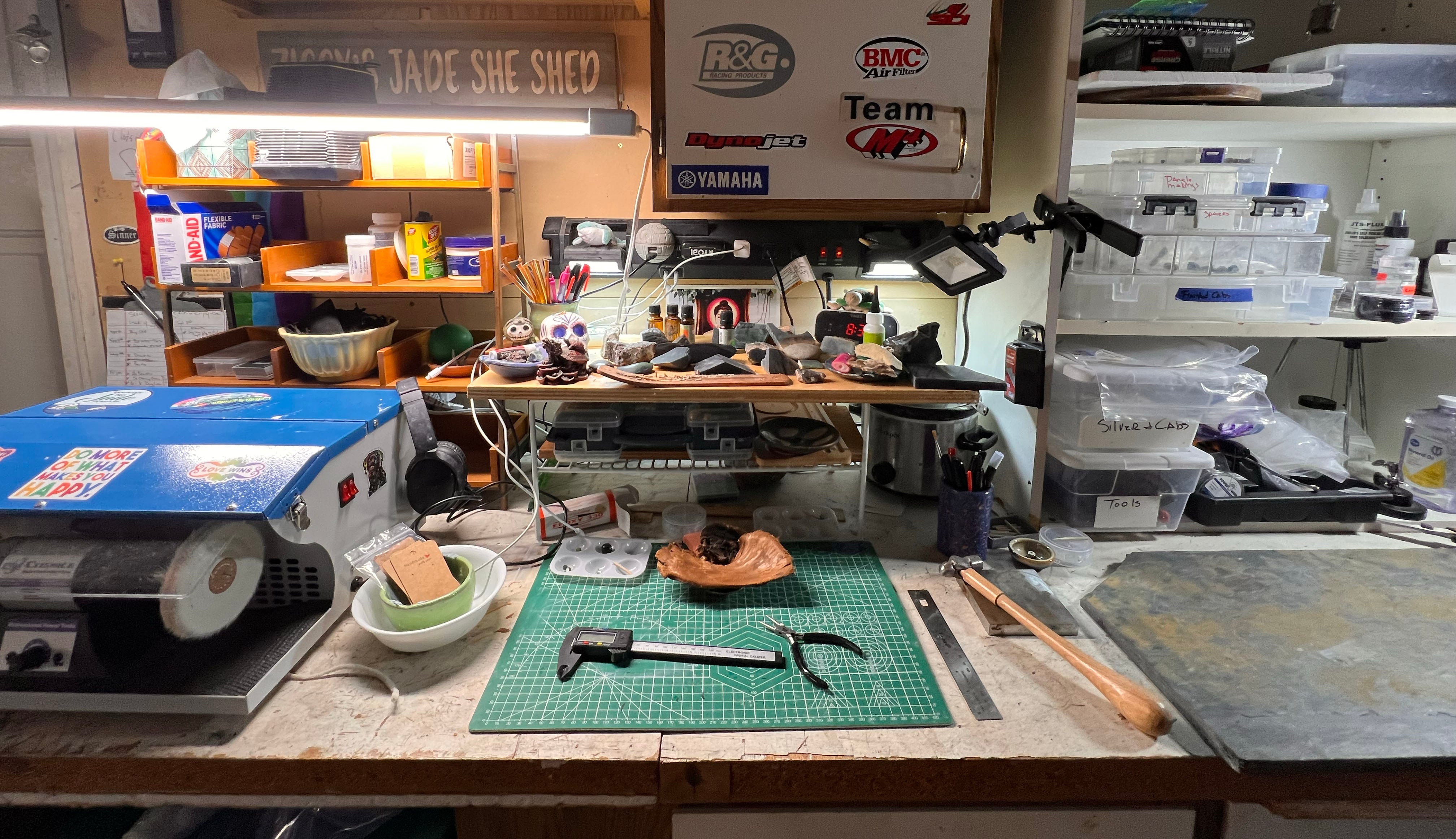 After some pointers, some direction from my friend, and other carvers within the jade community and countless YouTube videos, I started making simple pendants and earrings. Then, 2 years ago, I left my job and started a business making jade jewelry full time and have improved with each piece. In July last year, my partner Merry and I moved back to Washington and landed in Snohomish. After participating as a vendor in the NW Jade Festival last year, I decided I wanted to be a part of the planning committee for the Darrington Jade Festival. By being proactive in the jade community here, not only can I learn about the beautiful jade found here and deepen my skills as an artist, but I can actively help grow the culture and awareness of jade.