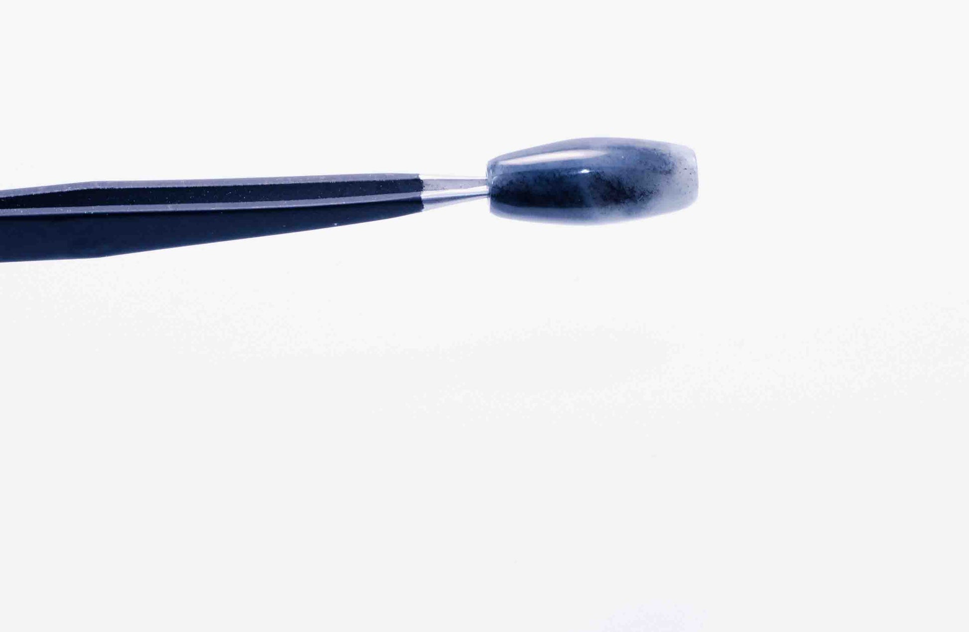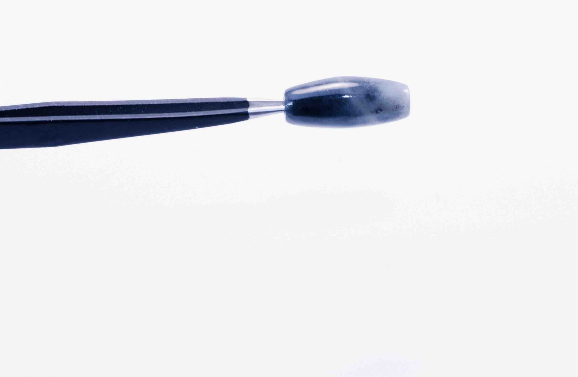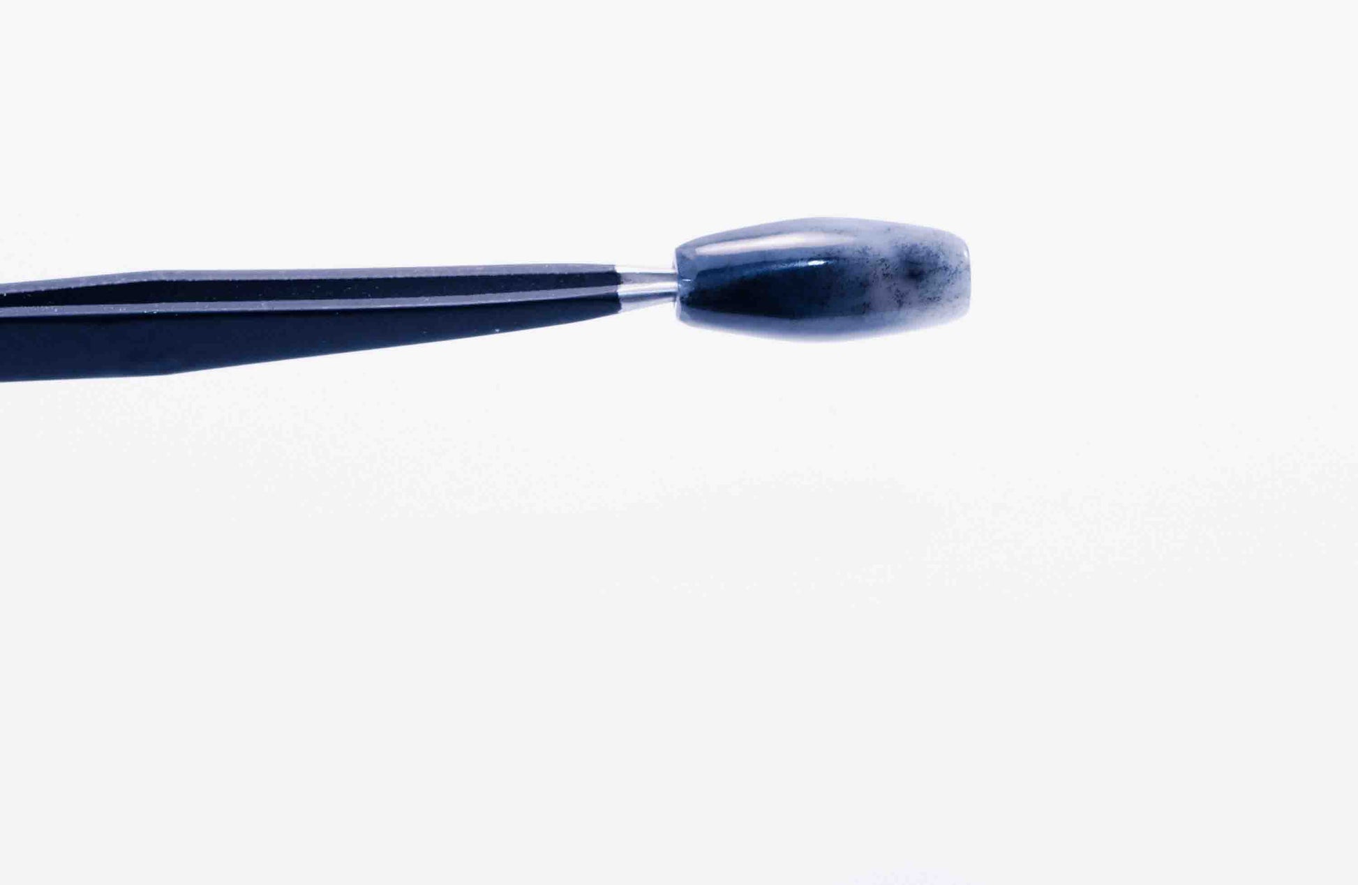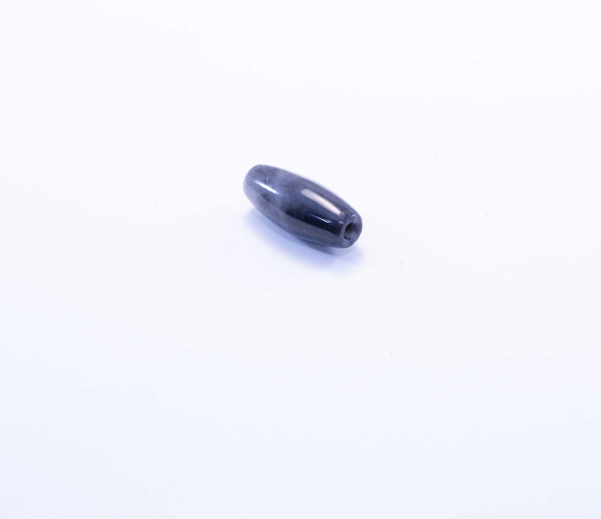 This hand-carved tube bead is shaped from Chinese Porcelain River Jade, featuring natural black, white, and soft grey tones with subtle marbling throughout. The contrast within the stone gives the bead depth and quiet movement, while maintaining a clean, refined presence.