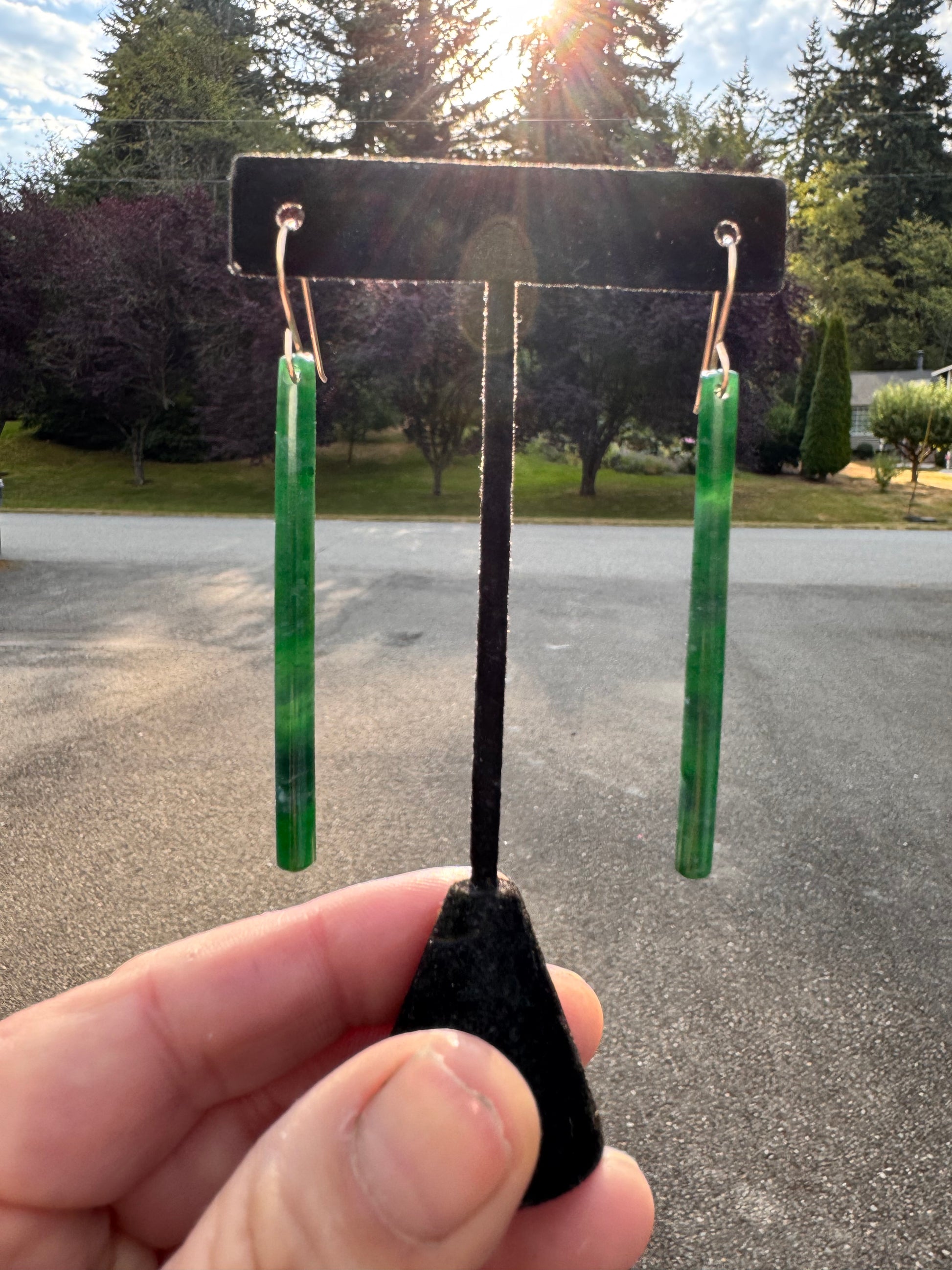 Handmade Imperial Green Guatemalan Jadeite Matchstick Dangle Earrings
