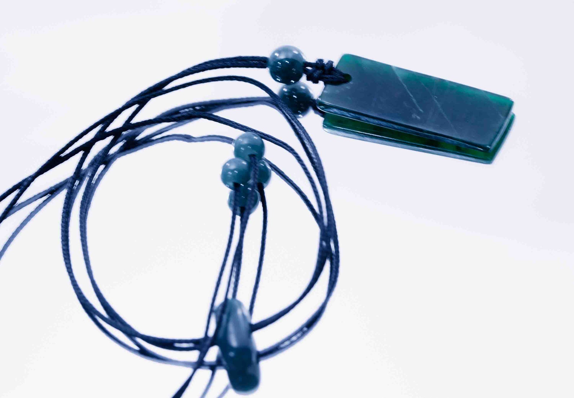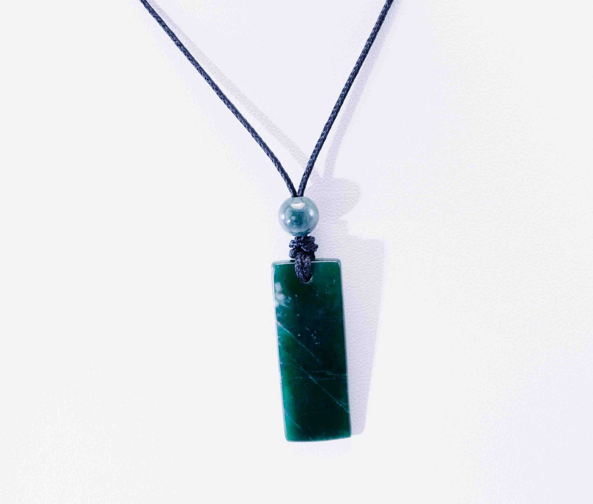 This rectangular pendant is carved from natural Guatemalan Imperial green jadeite, prized for its depth of color and rich saturation.