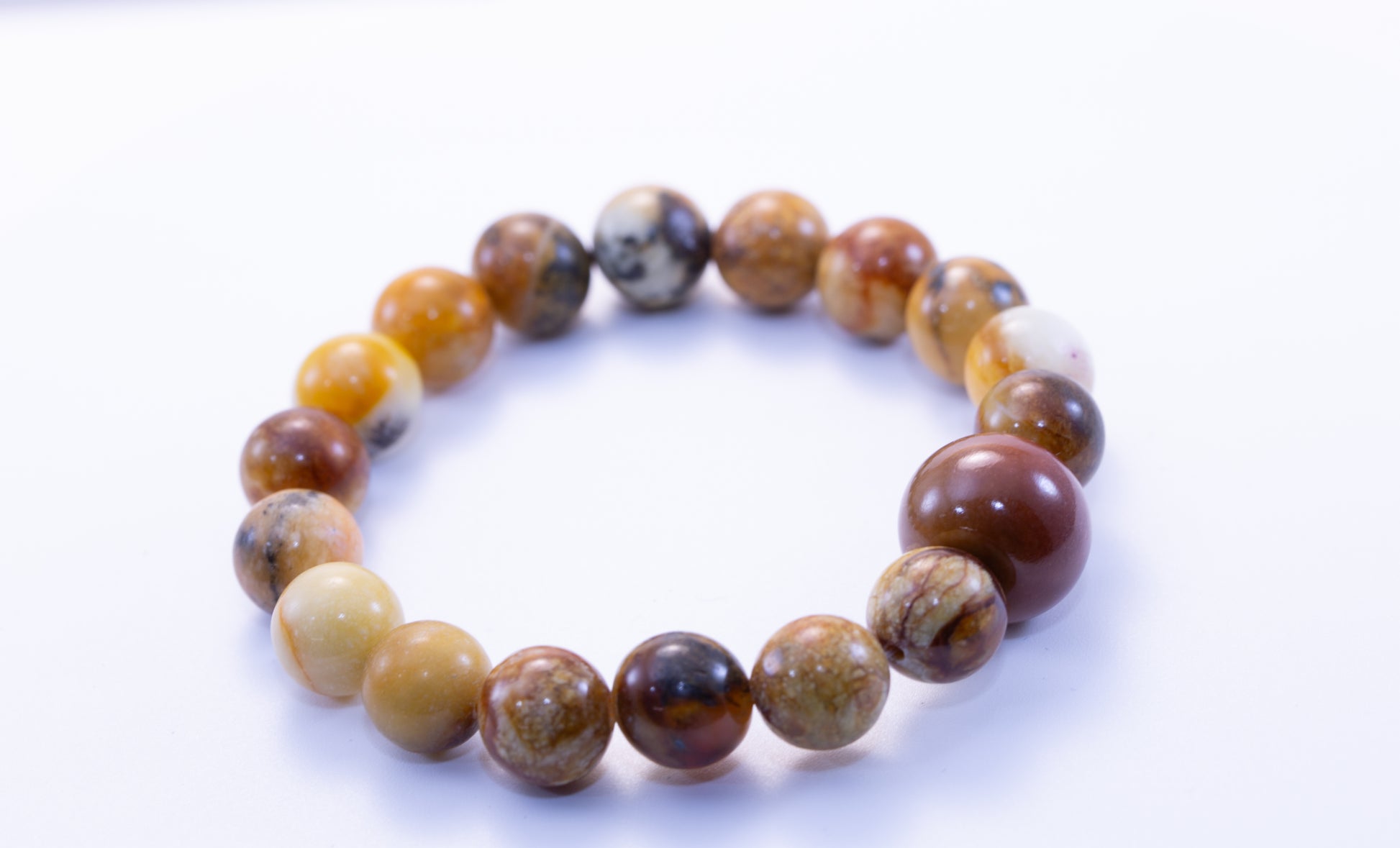 Strung on durable elastic cord.08 mms for a comfortable fit