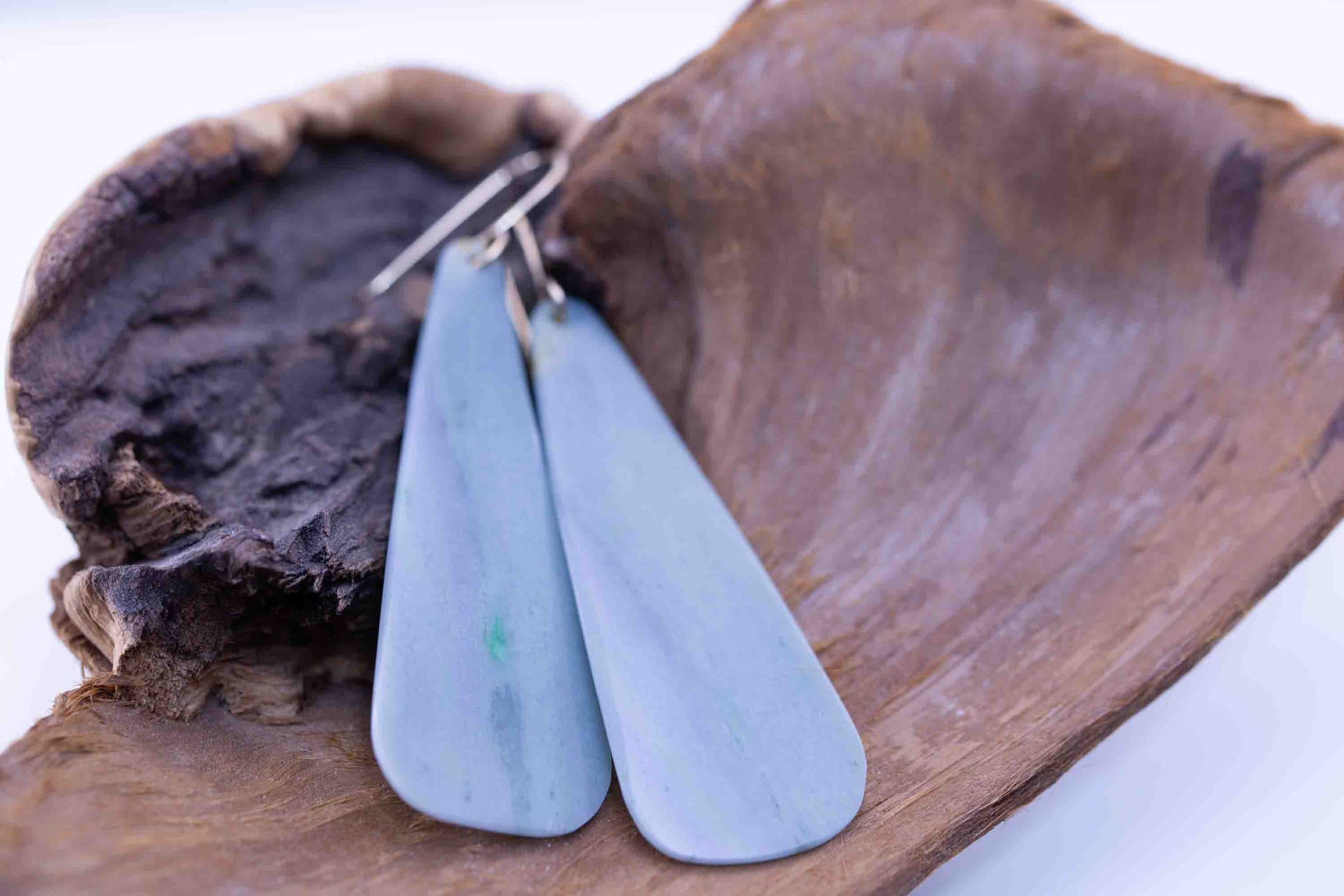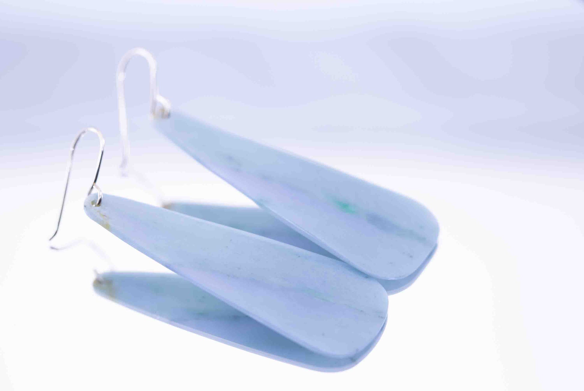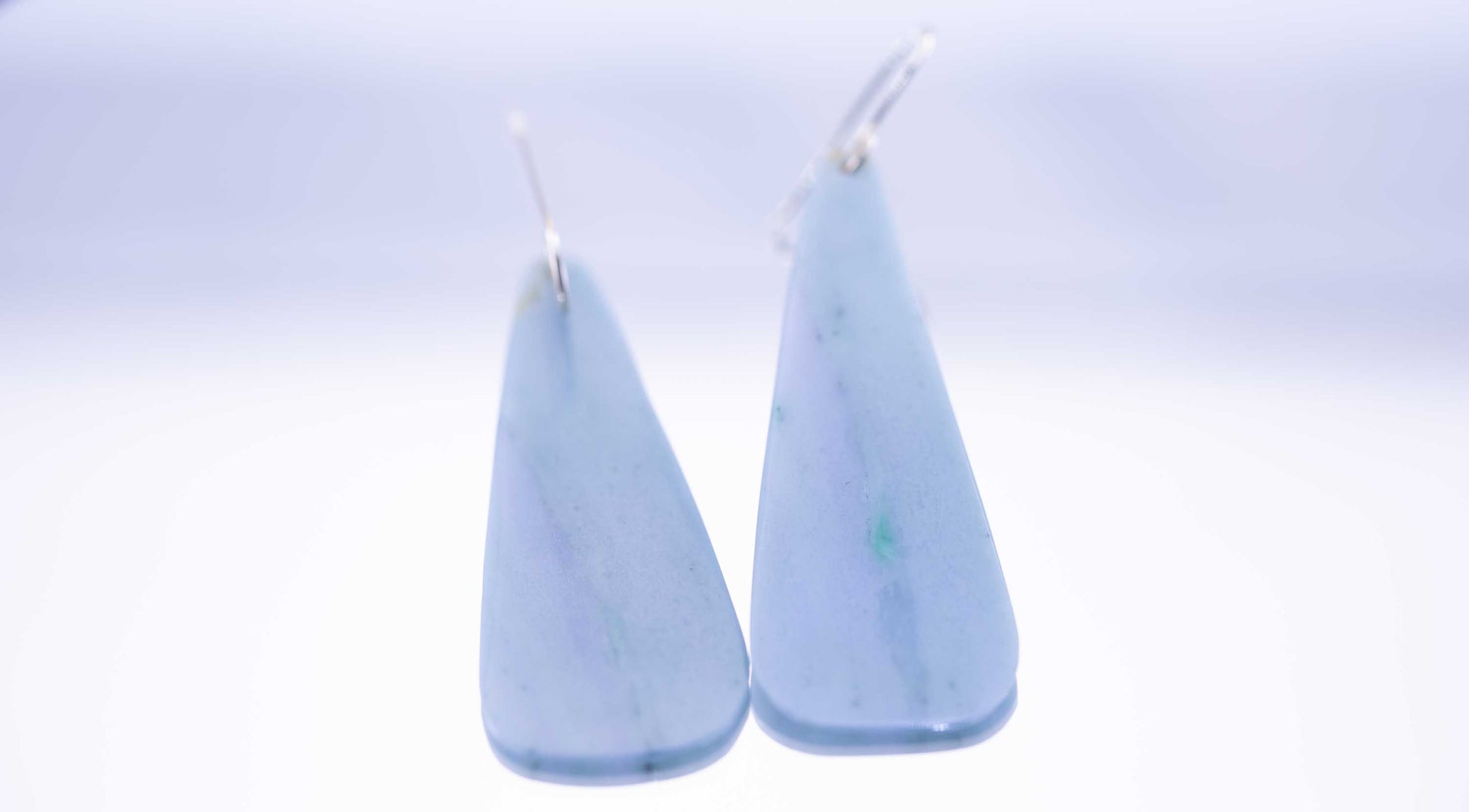 These one-of-a-kind Guatemalan jadeite dangle earrings feature rare blue-purple hues that shift beautifully between cool lavender, soft indigo, and misty blue. Each stone is hand-shaped and polished to reveal its natural color zoning and depth, making every pair truly unique.