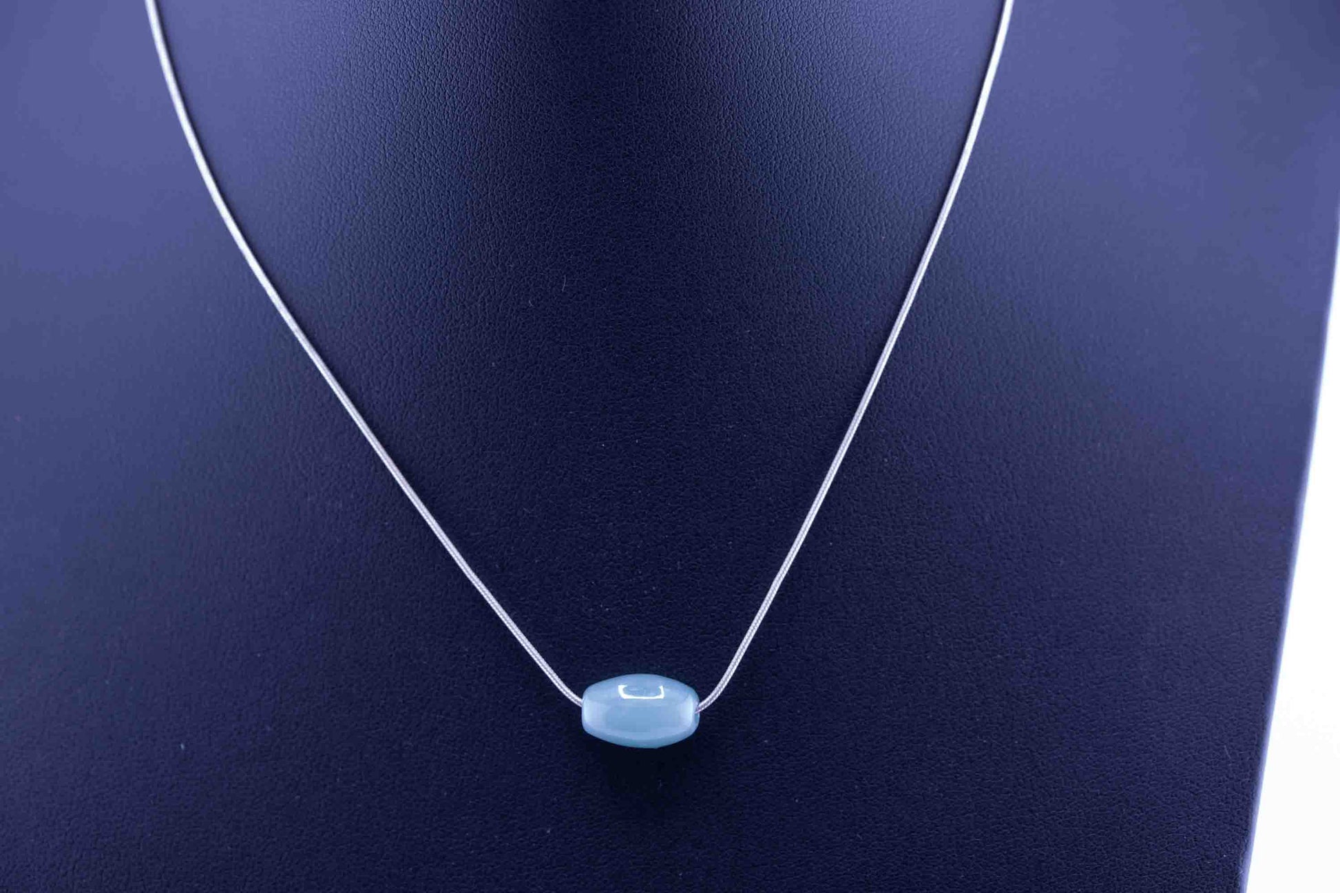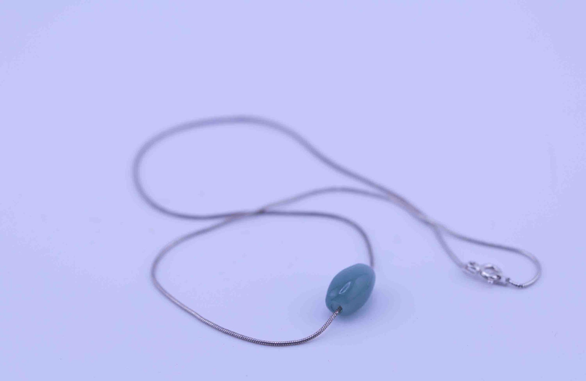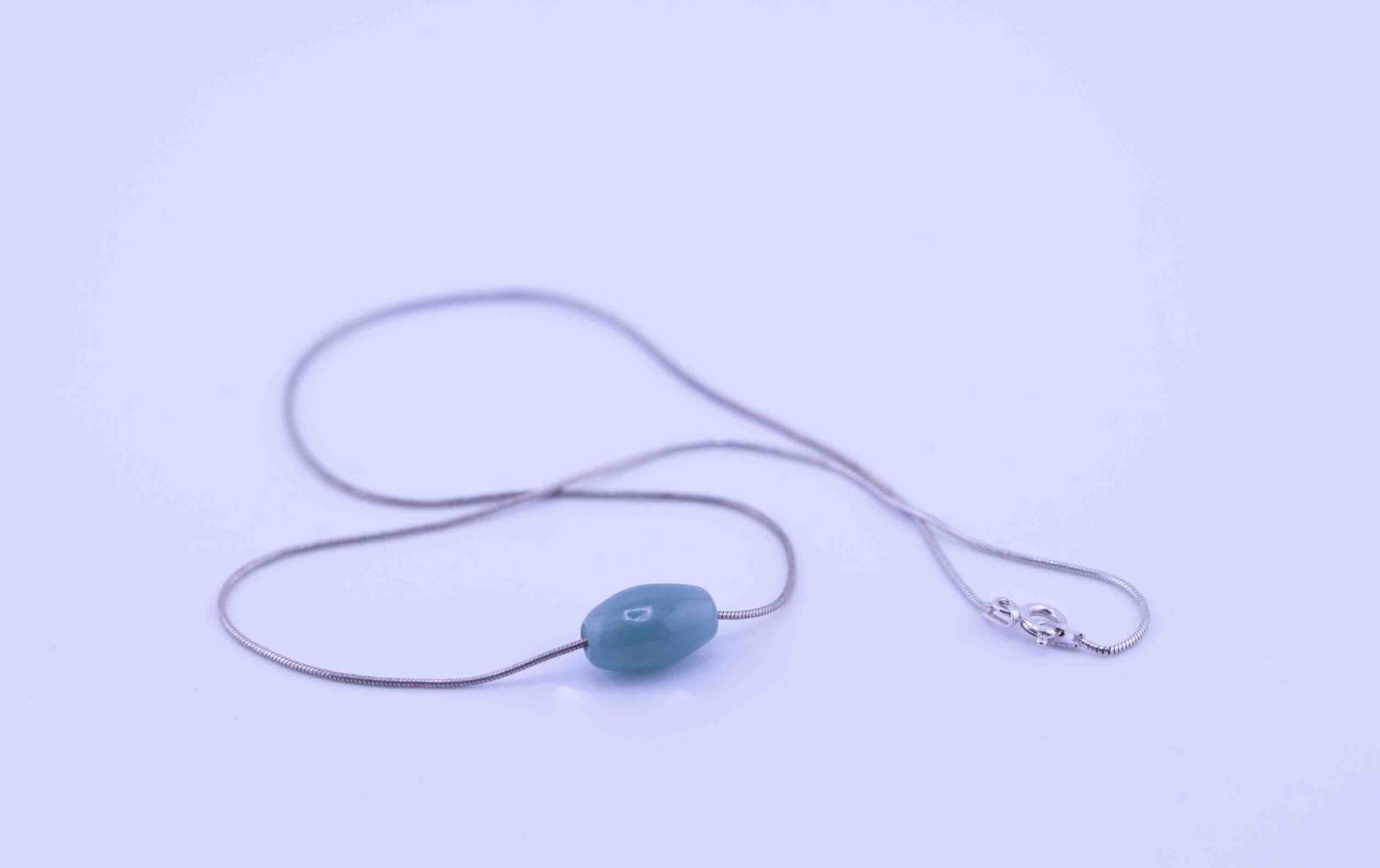 Guatemalan Blue Jade Necklace – Barrel Bead Pendant – Sterling Silver Rope Chain