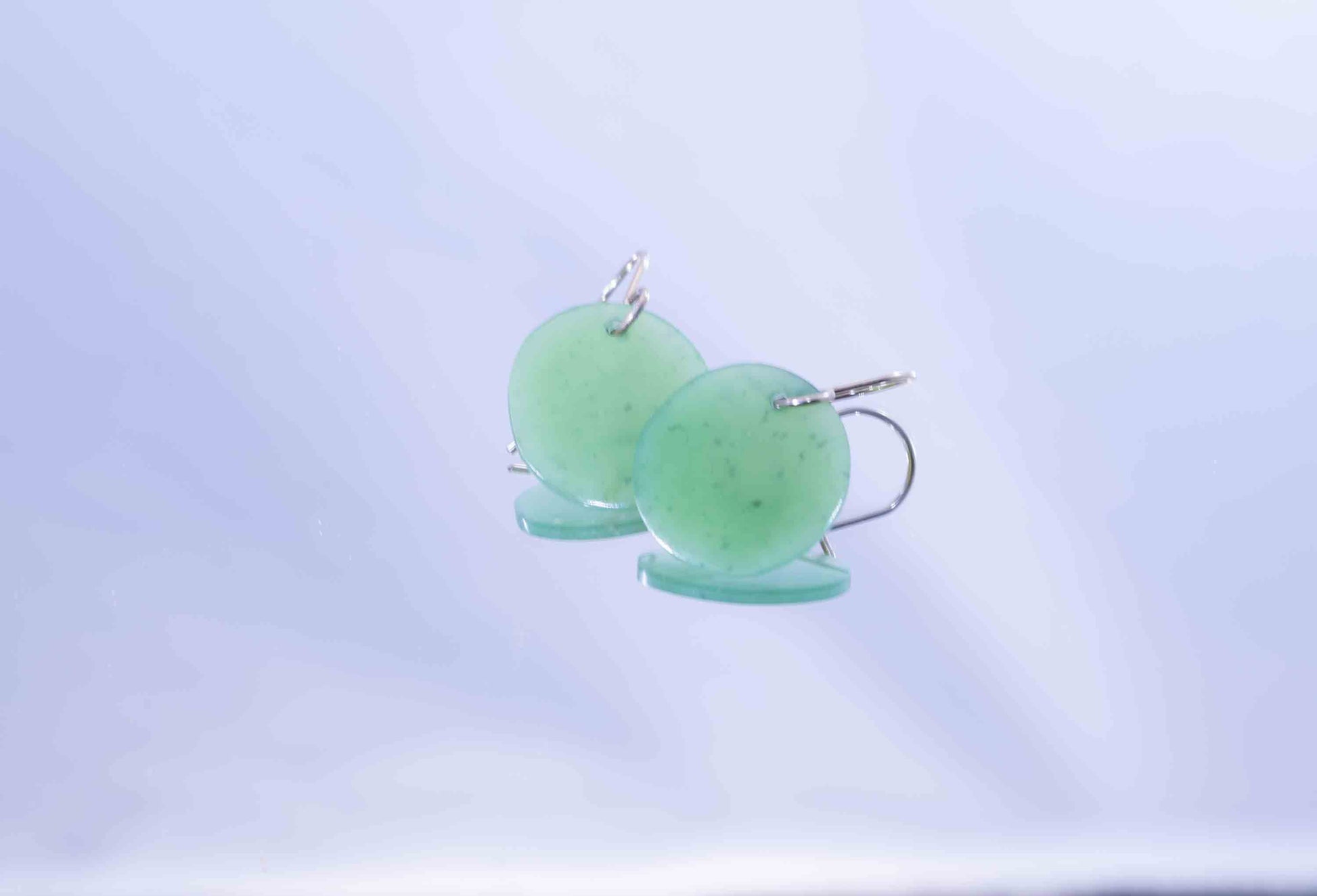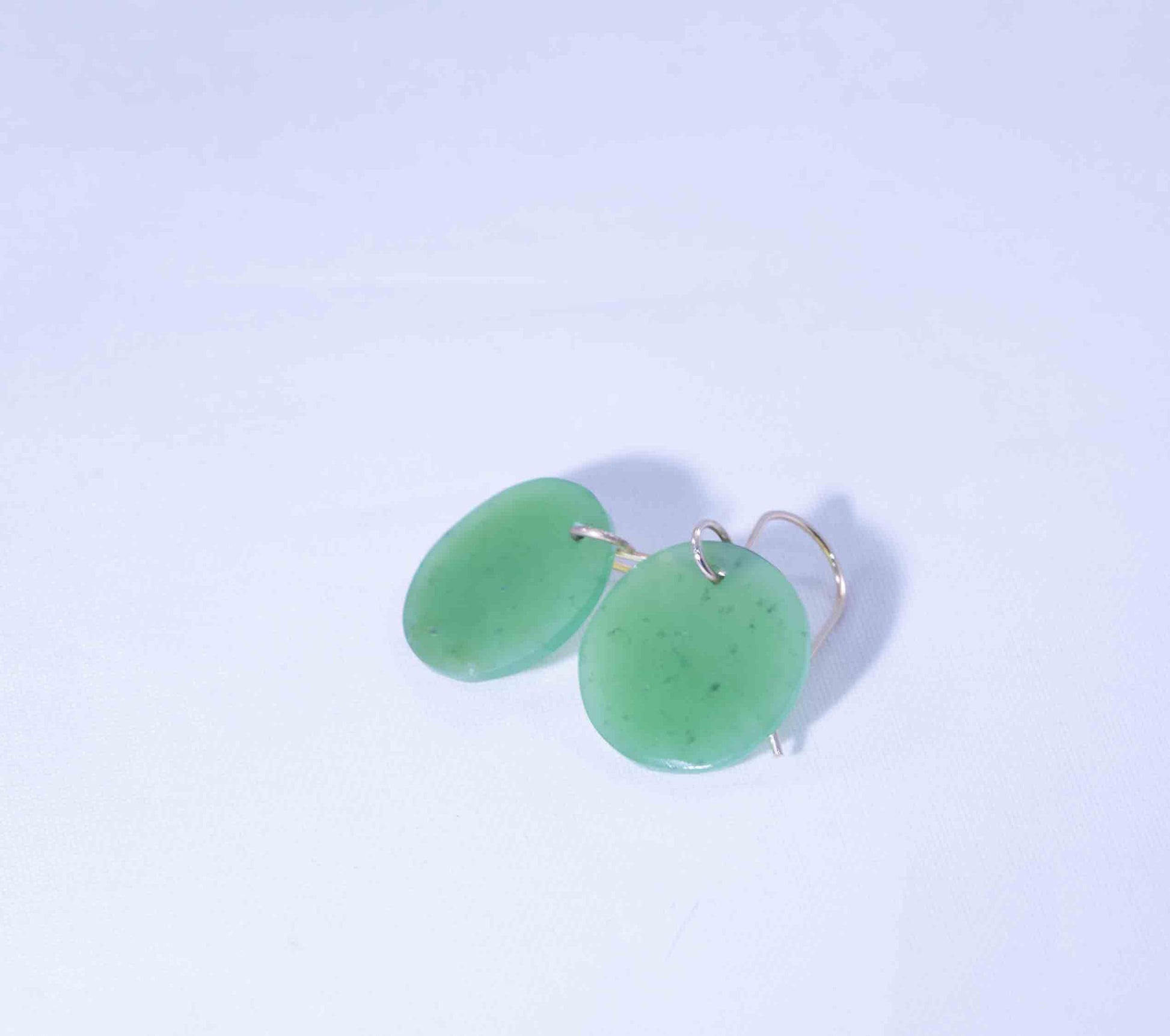 These stunning earrings feature hand-shaped disc beads carved from rough Wyoming apple jade, showcasing the stone’s natural vibrancy and smooth, luminous texture. Each disc highlights the rich, fresh apple green color Wyoming jade is prized for, with subtle natural variations that make every piece unique.