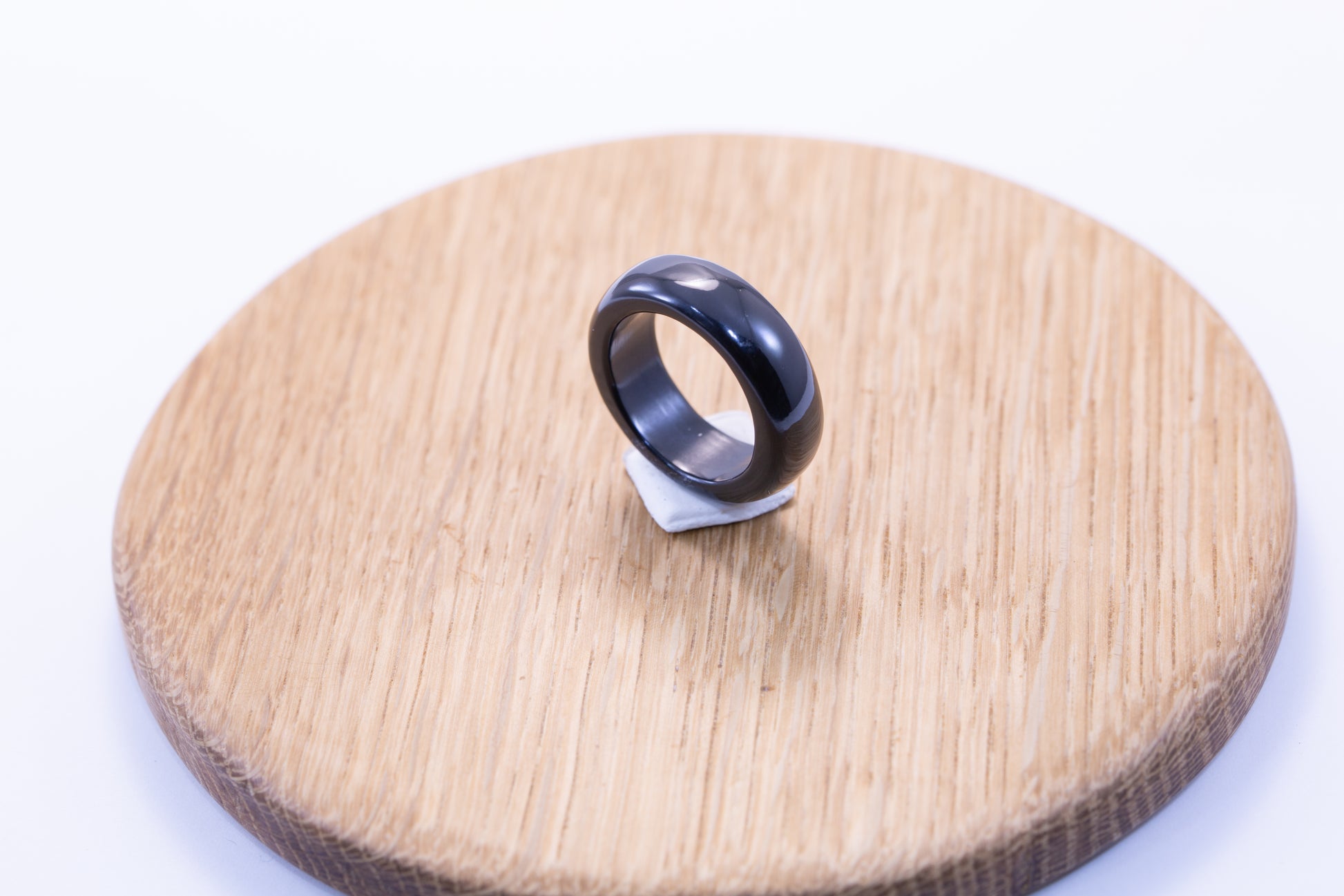 Each ring is hand-cut, shaped, and polished to a glossy finish, highlighting the natural depth and beauty of the stone.
